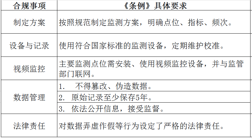 對(duì)排污單位明確剛性義務(wù):需按規(guī)范開展自行監(jiān)測(cè),關(guān)鍵點(diǎn)位裝視頻并聯(lián)網(wǎng),使用國(guó)標(biāo)設(shè)備且定期校準(zhǔn),監(jiān)測(cè)數(shù)據(jù)實(shí)時(shí)上傳、留存?zhèn)洳椴⒁婪ü_,嚴(yán)禁造假;對(duì)第三方機(jī)構(gòu)要求資質(zhì)備案、執(zhí)業(yè)獨(dú)立,造假需承擔(dān)連帶責(zé)任。